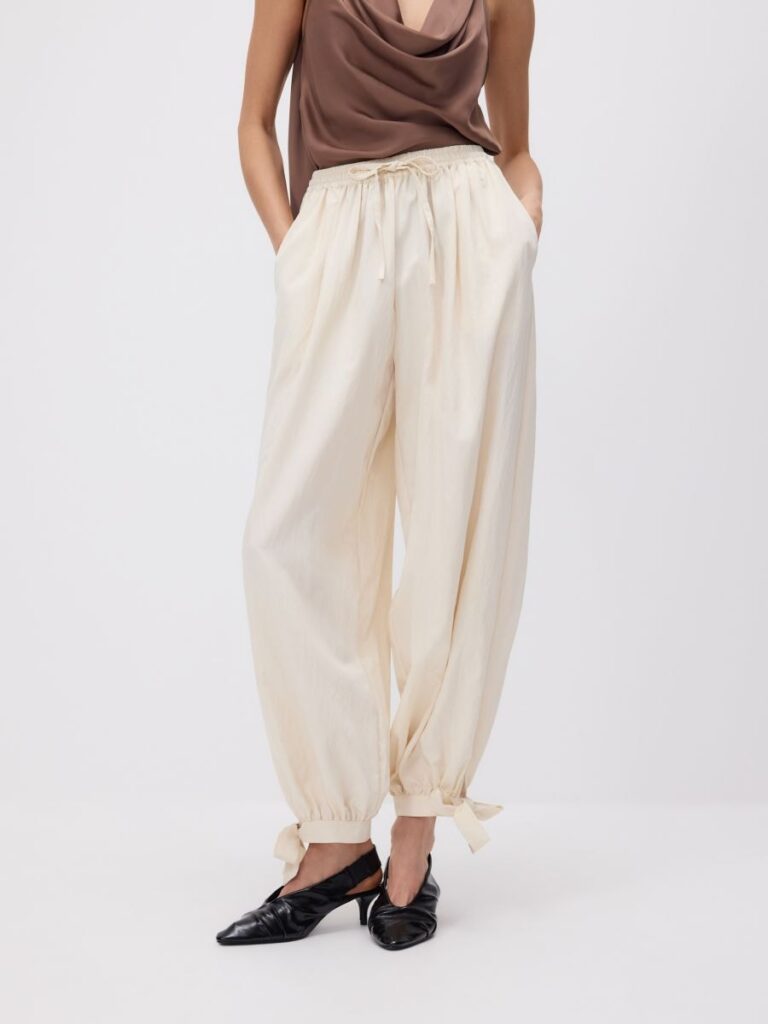 Även flare- och culotte-modeller får allt större utrymme. Deras form tillför rörelse och kan bidra till att visuellt förlänga silhuetten, särskilt i kombination med kortare ytterplagg eller mer figurnära överdelar.